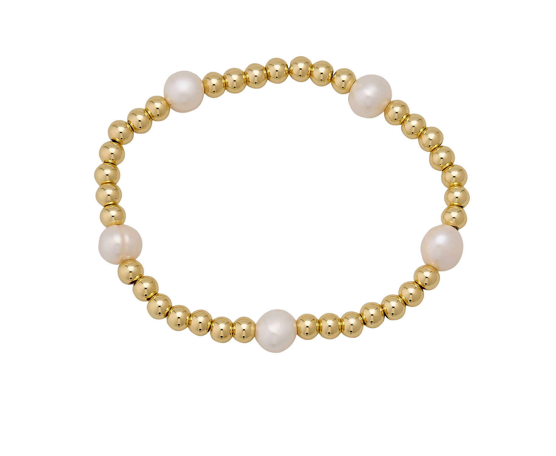 6MM Water Resistant Gold Ball + Fresh Water Pearl Bracelet