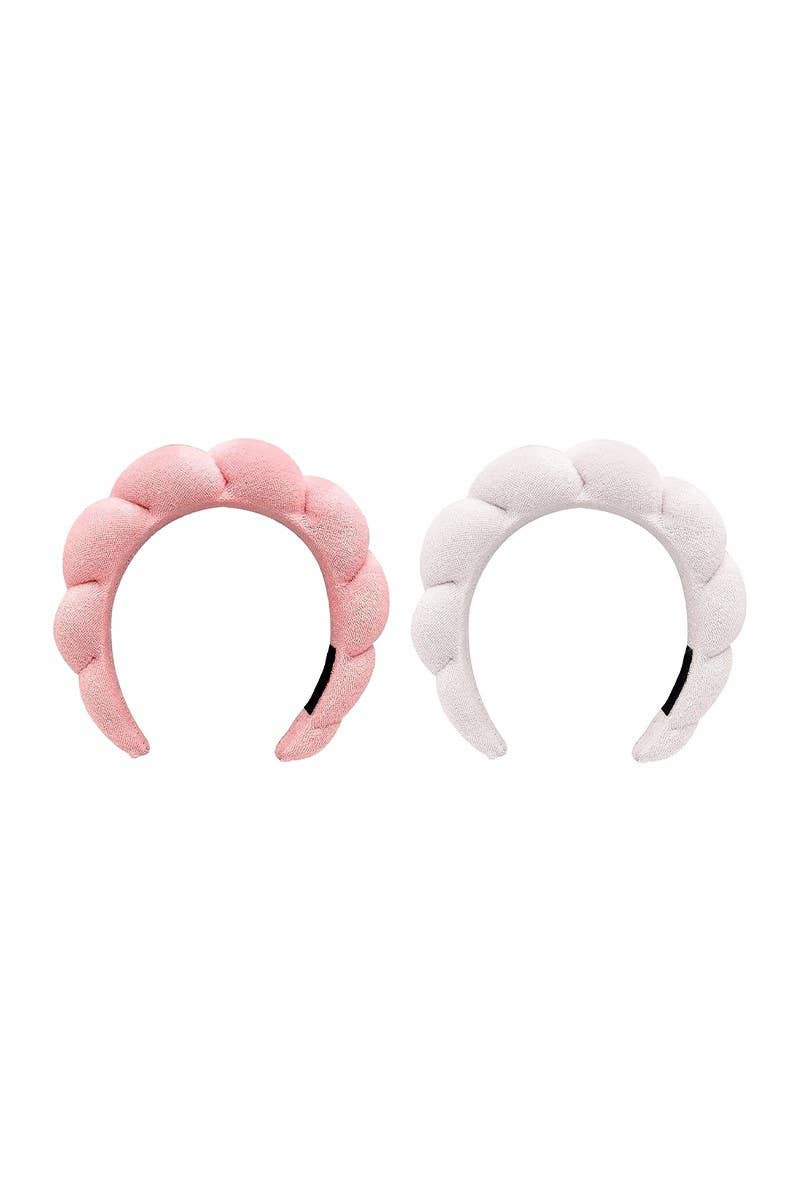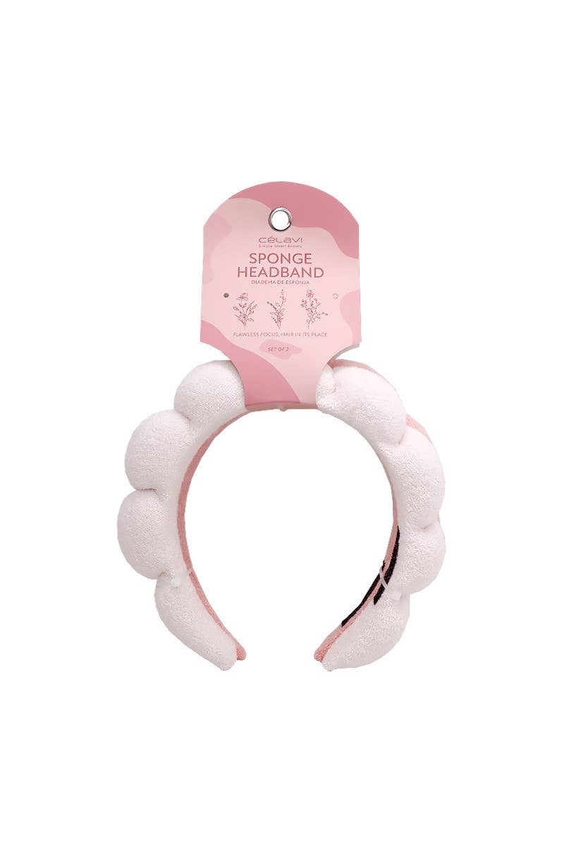 Celavi 45352 Sponge Headbands. A 2 pc set of handmade terry towel cloth Spa headbands perfect for holding hair back and keeping it in place. Terry towel cloth texture provides maximum comfort without harming hair. Use while washing face, during skincare regimen, masking, and applying makeup. 2 pcs in 1 set. 12 sets in pack.