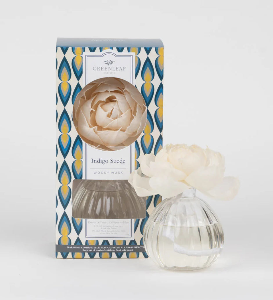 Our Flower Diffuser includes your favorite Greenleaf fragrance oil and a sola paper flower that emits a beautiful, blooming scent for up to 60 days! As the fragrance oils are absorbed through the wick, the flower begins to “bloom,” slowly emitting the fragrance and eventually resembling real flower petals. With the neutral color of the oil and the large flower, it will enhance and complement any space.