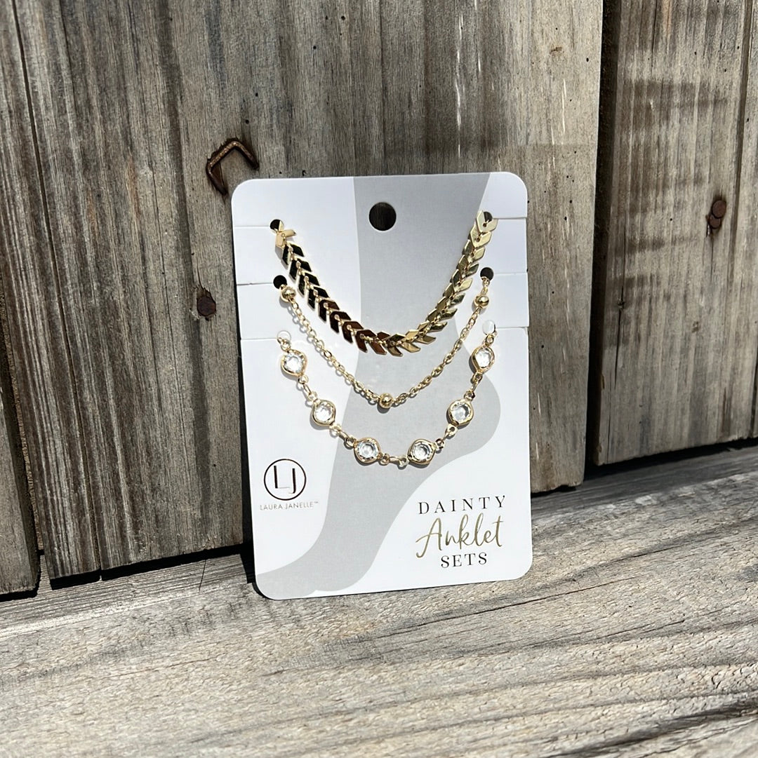 Enhance your summer look with our stunning set of 3 Dainty Anklets! Handcrafted with intricate details, these anklets will add a touch of elegance and style to your outfit. Perfect for any occasion, these anklets are the must-have accessory this season. Don't miss out, get yours today!