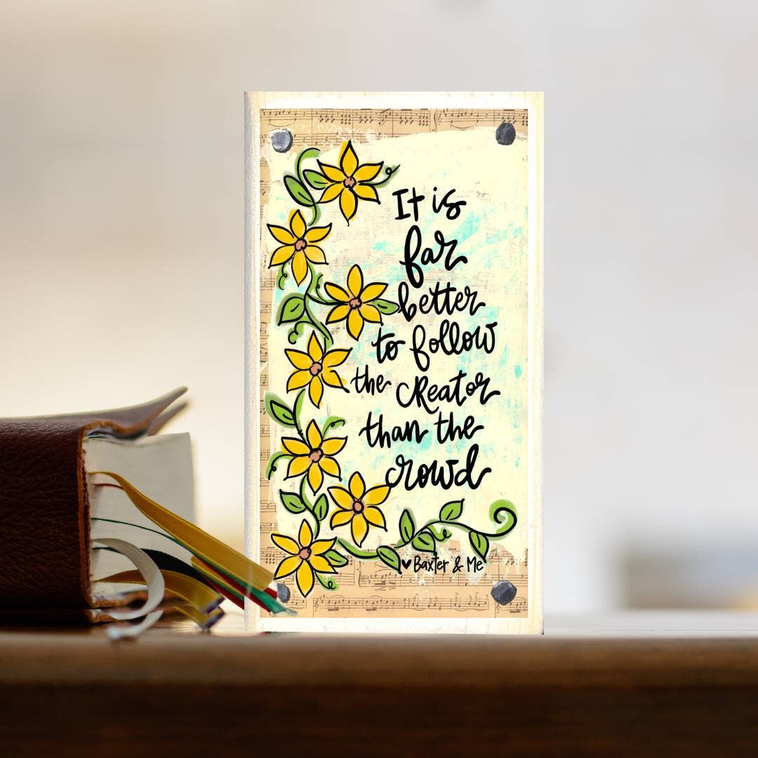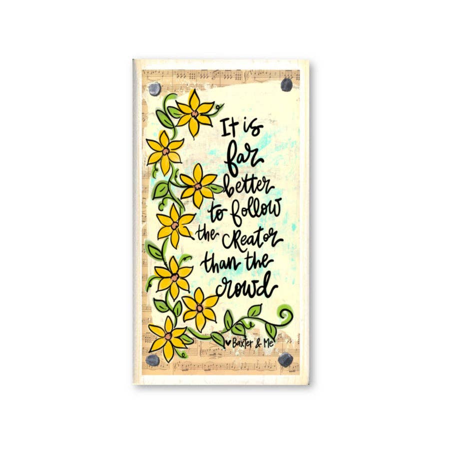 Happy Blocks feature original artist-designs with precious sentiments your customers will love. Printed on wood and finished by hand, happy blocks are a favorite. Dimensions: 2" x 4" x 6".