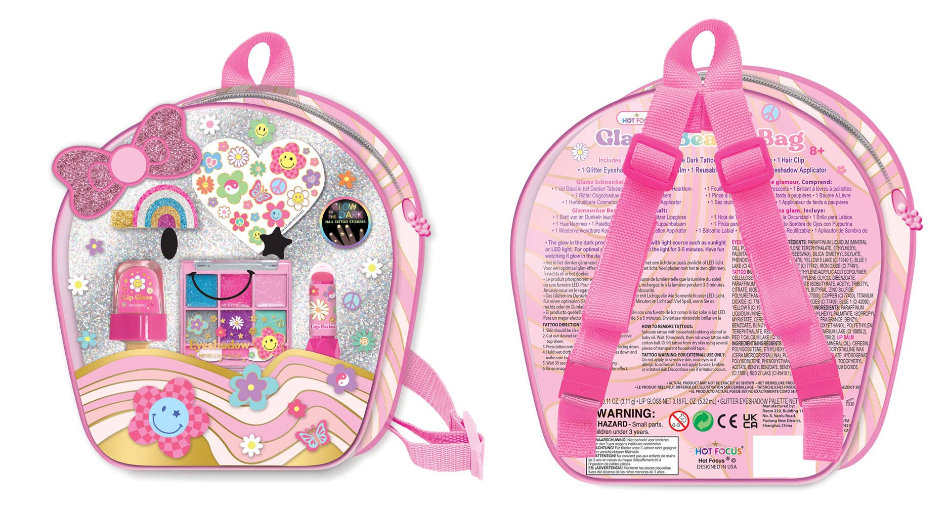 This stylish, sparkling, and reusable bag is perfect for on the go! accessorize your day with many beauty looks that can be made with our sparkling cosmetics. Have fun with our glow in the dark nail stickers.