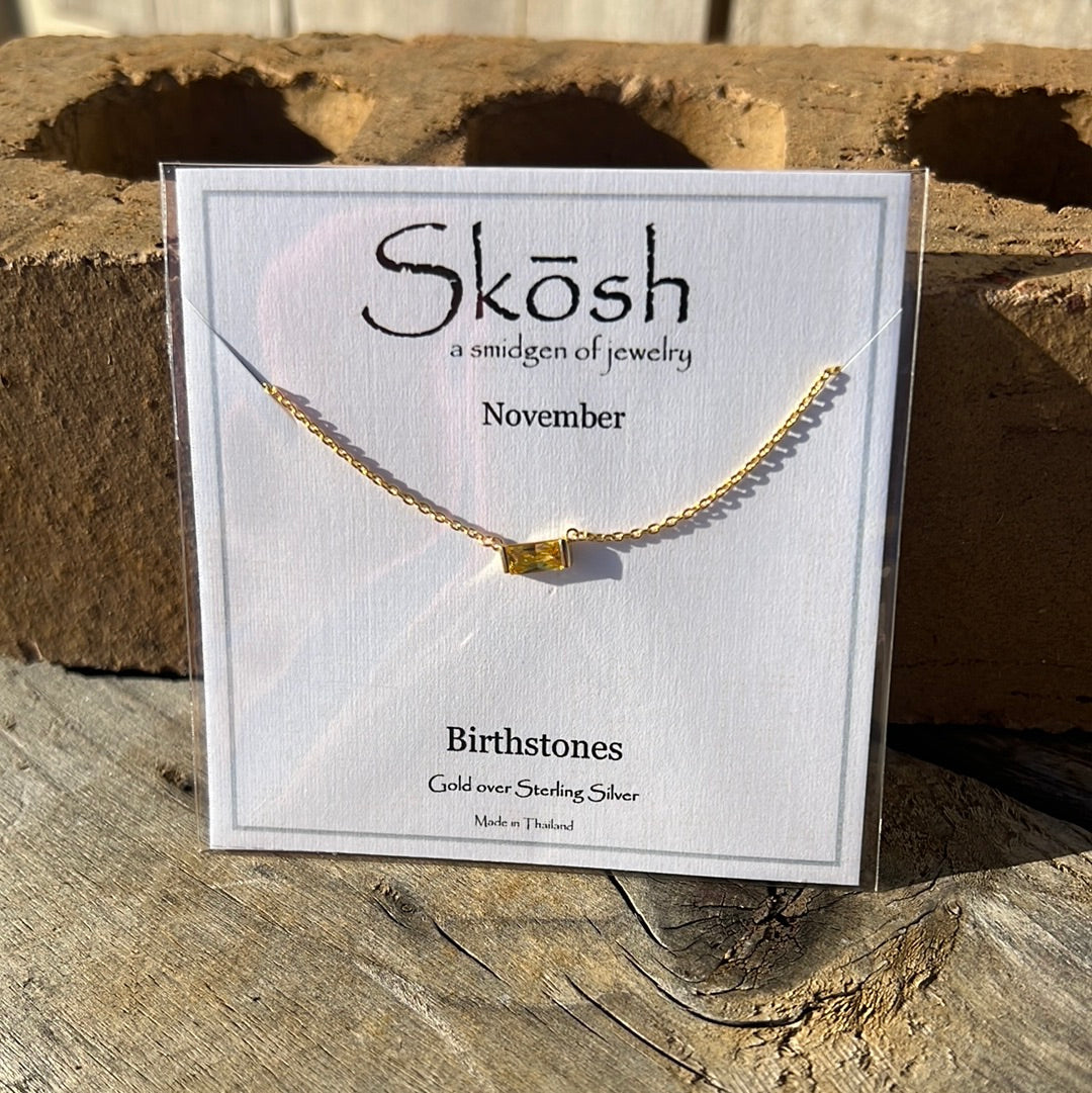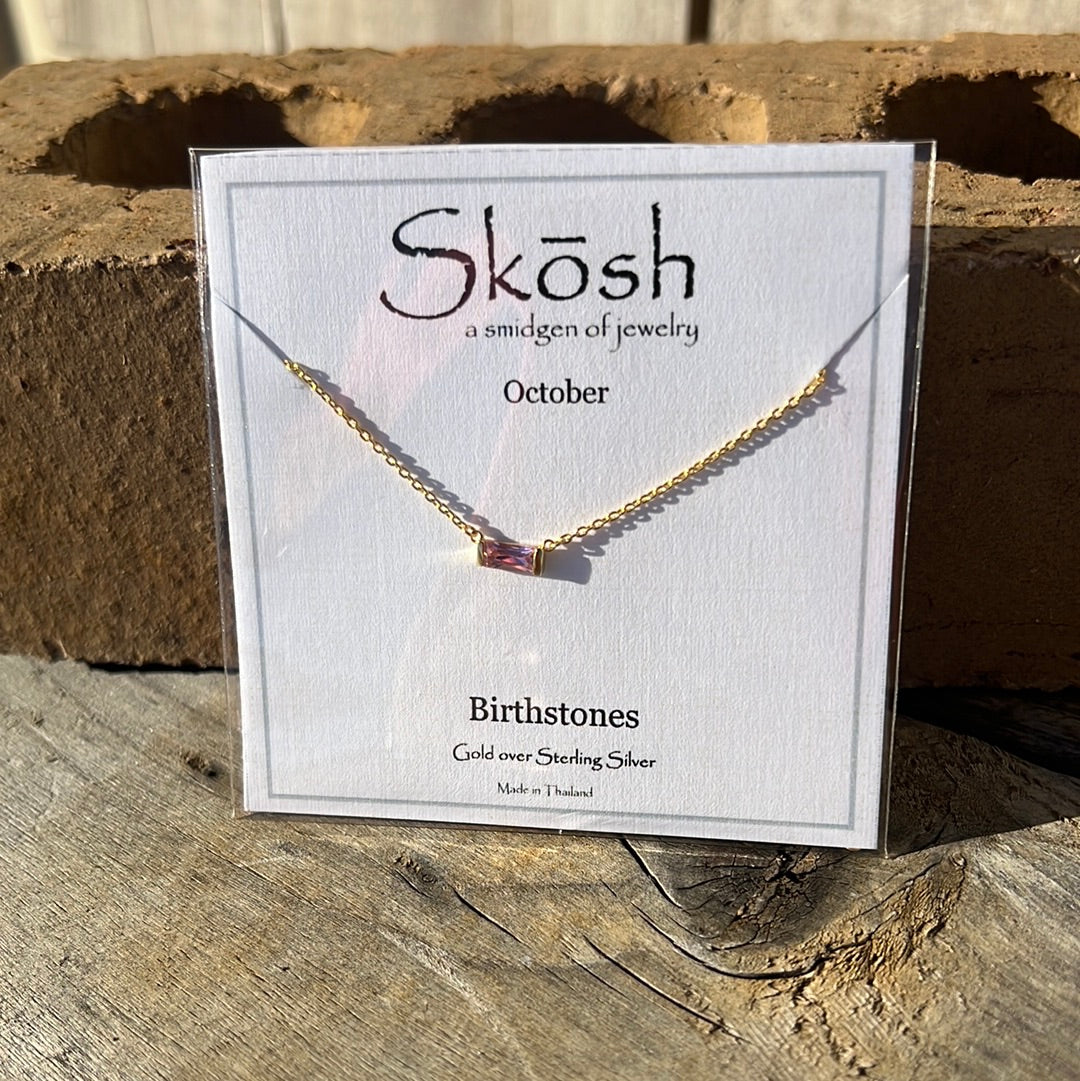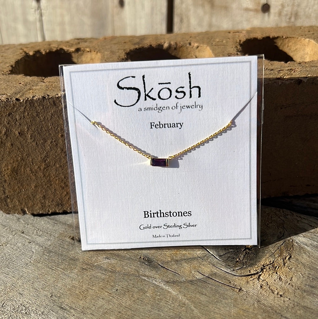 Gold Baguette Birthstone Necklace