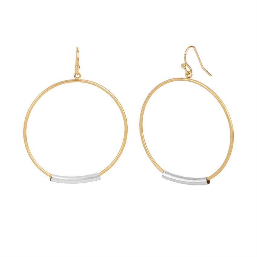 Gold Hoop with Metal Bar Earrings