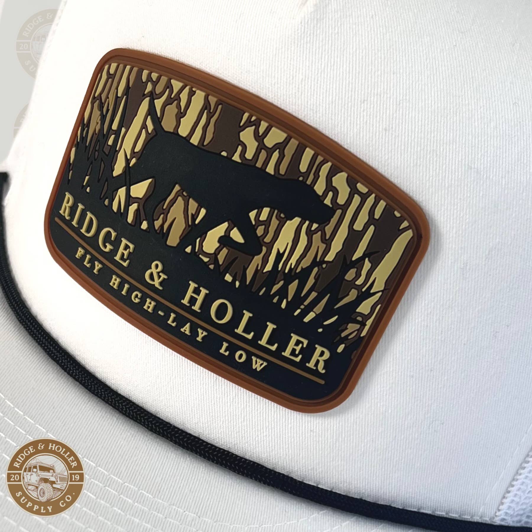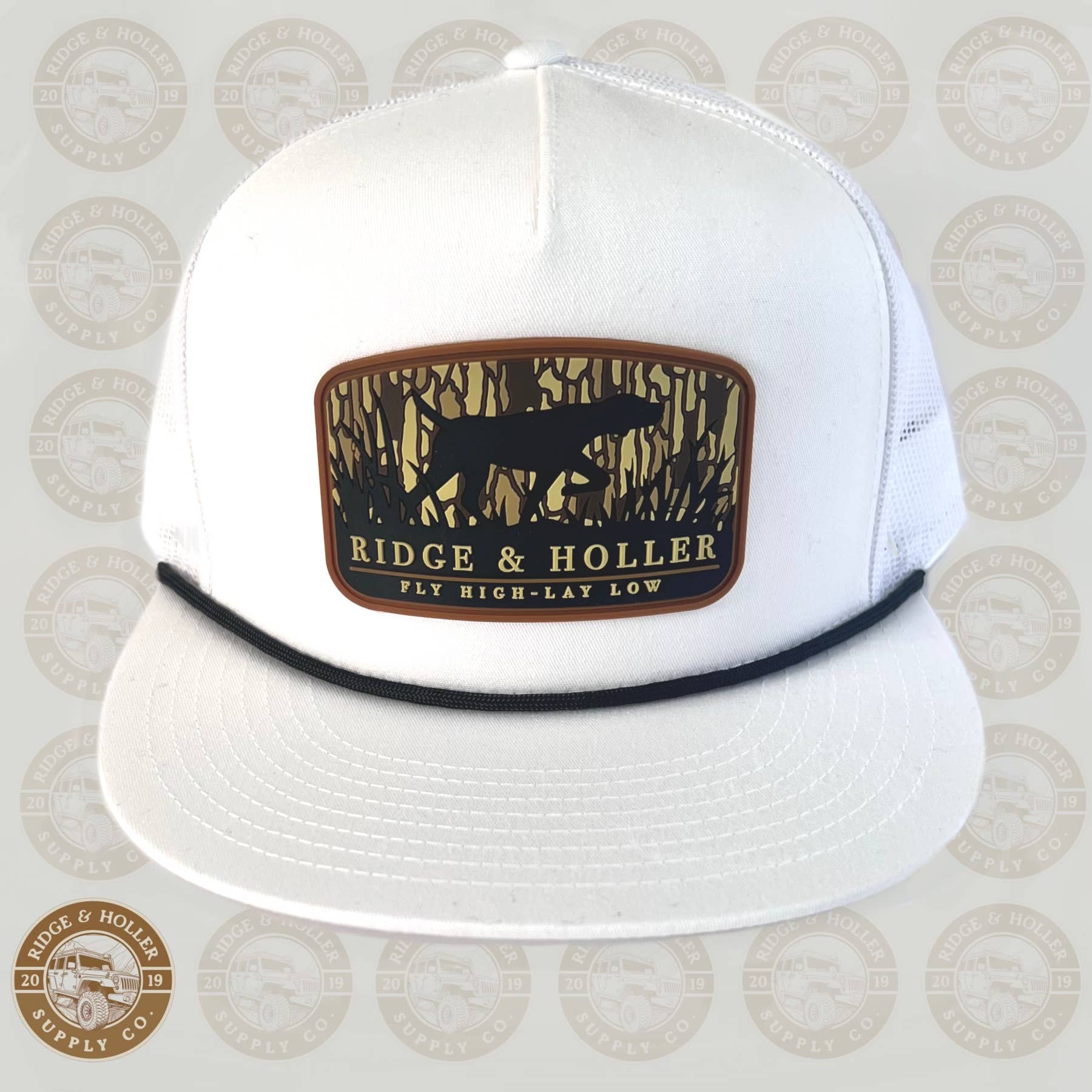 Introducing our newest addition: a sleek, all-white tall boy SnapBack hat with the Ridge&Holler hound logo. Made with top quality materials, the Houndstown SnapBack hat is perfect for any Ridge&Holler fan looking for durability and style. Show off your love for Ridge&Holler with this must-have accessory.