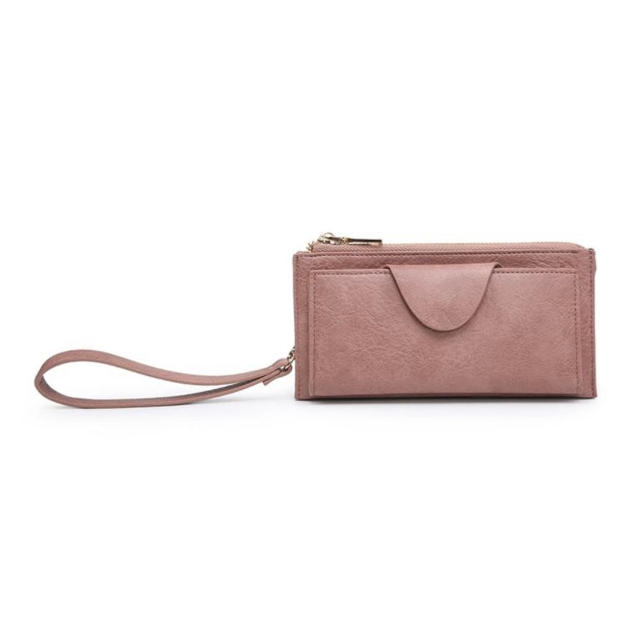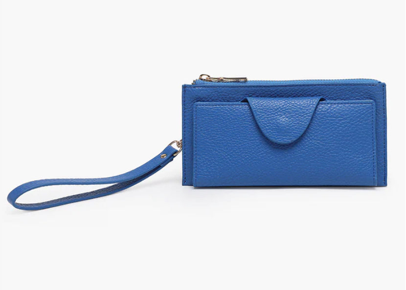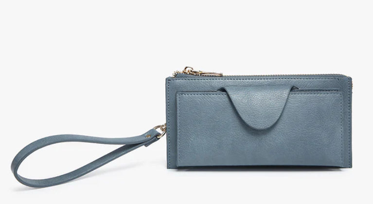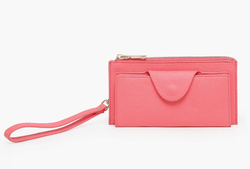 Kyla is one of our best-selling wallets! Features multiple card slots and an ID slots that snap closed, a zip change pocket, and a wristlet strap to carry it with ease. Available in many great colors and prints! Dimensions: 7.5"L x 4'H