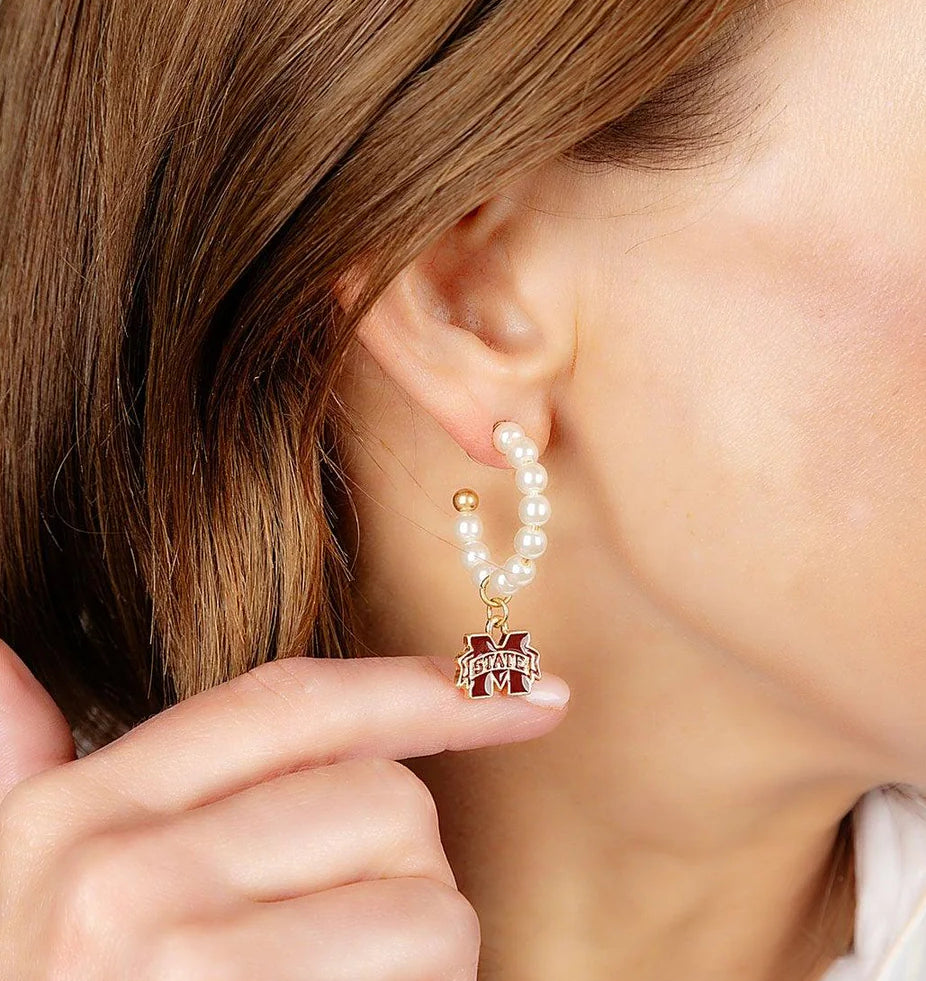 Mississippi State Bulldogs Pearl Hoop Drop Earrings