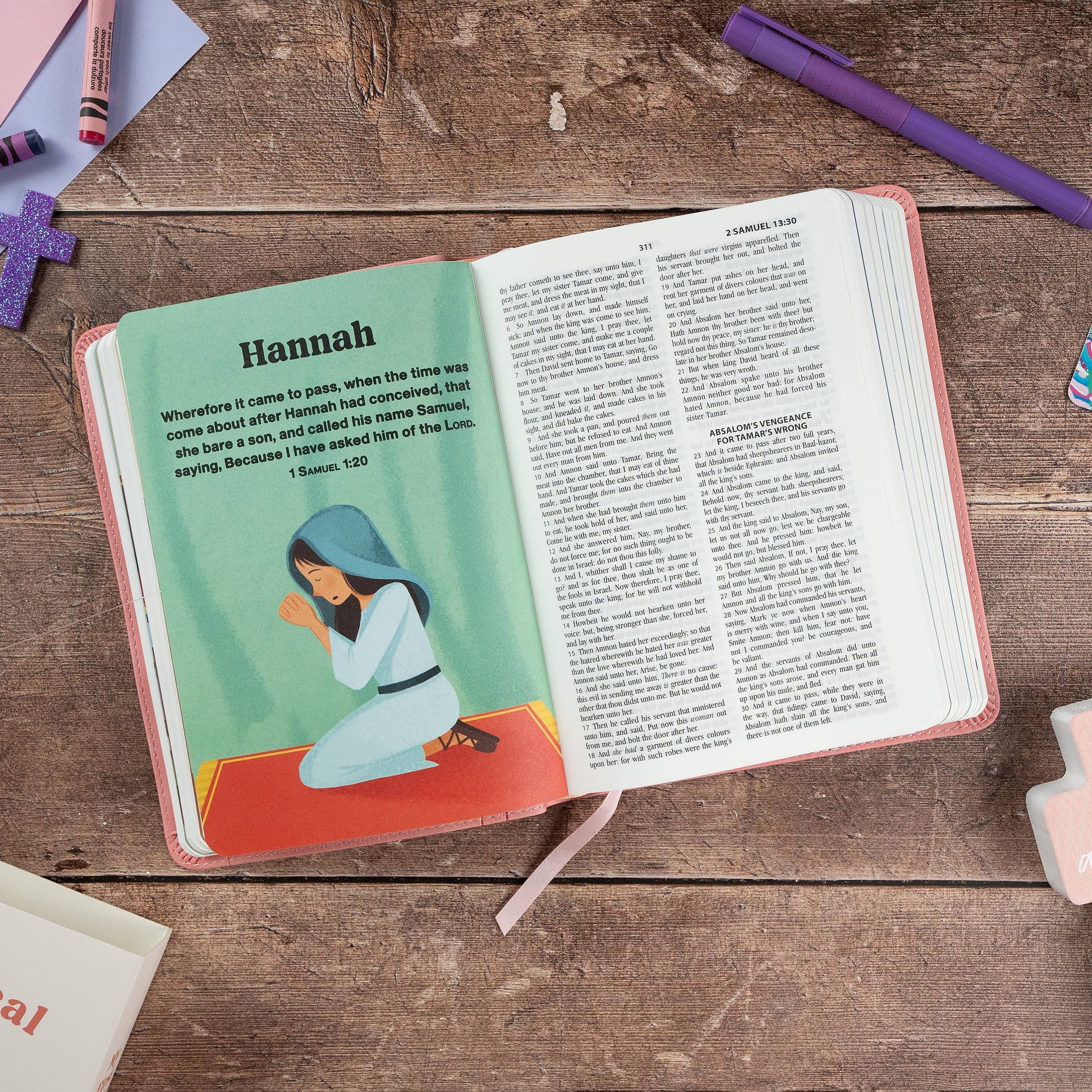 Many “Bibles” for young children aren’t actually Bibles but storybooks. Here’s a real Bible for preschool kids ages 3 to 5, featuring the complete text of the King James Version plus 36 cute and colorful tip-ins highlighting important Bible characters, people like