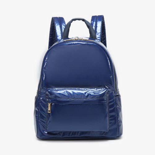 Make Phina your next travel companion! This adorable nylon backpack features a front zipper pocket, side pockets, and a back zip pocket. The inside is lined with slip and zip pockets. The straps are adjustable for your best fit. Made of nylon. Dimensions: 13"L x 14"H x 4.5"D