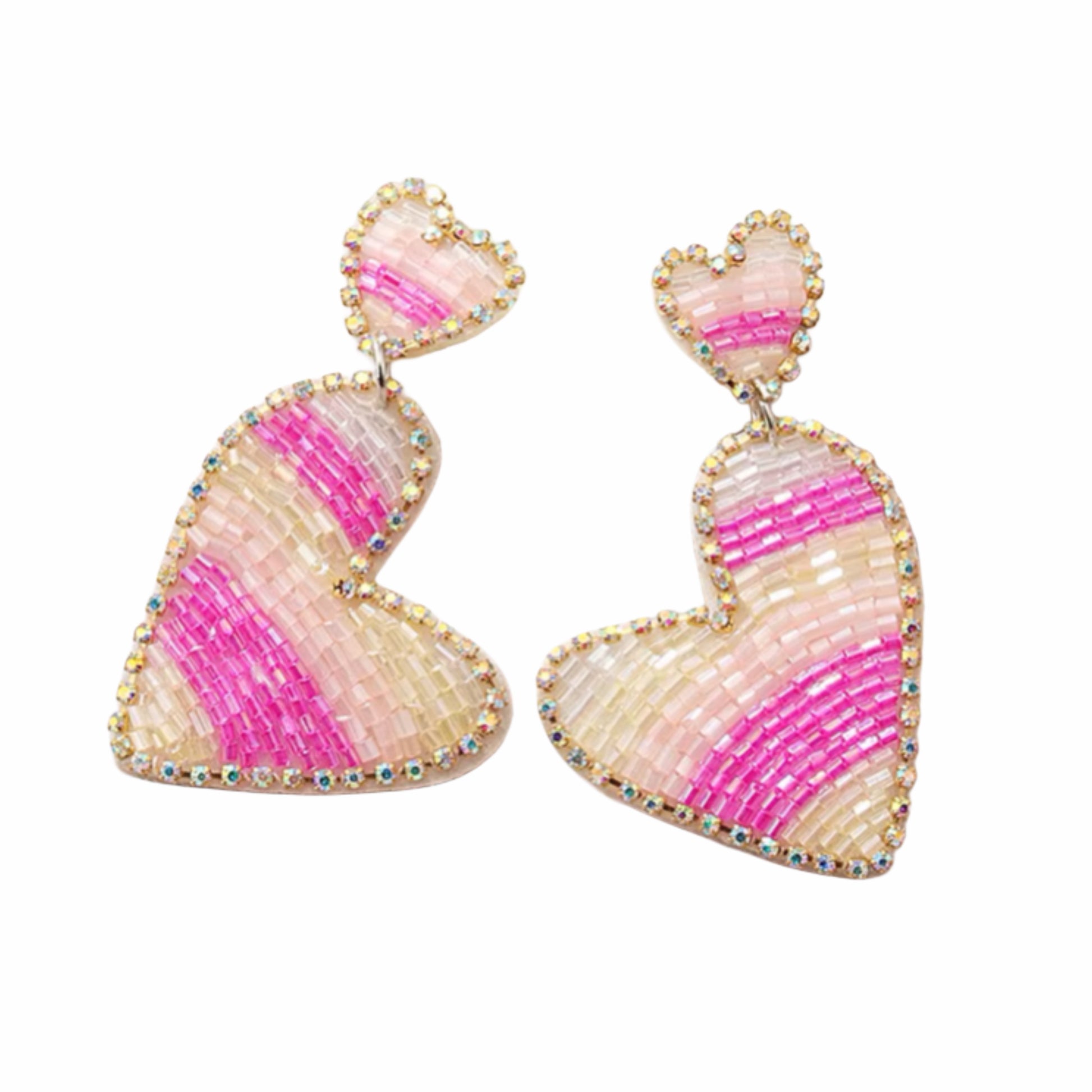 Pink Striped Double Heart Earrings
