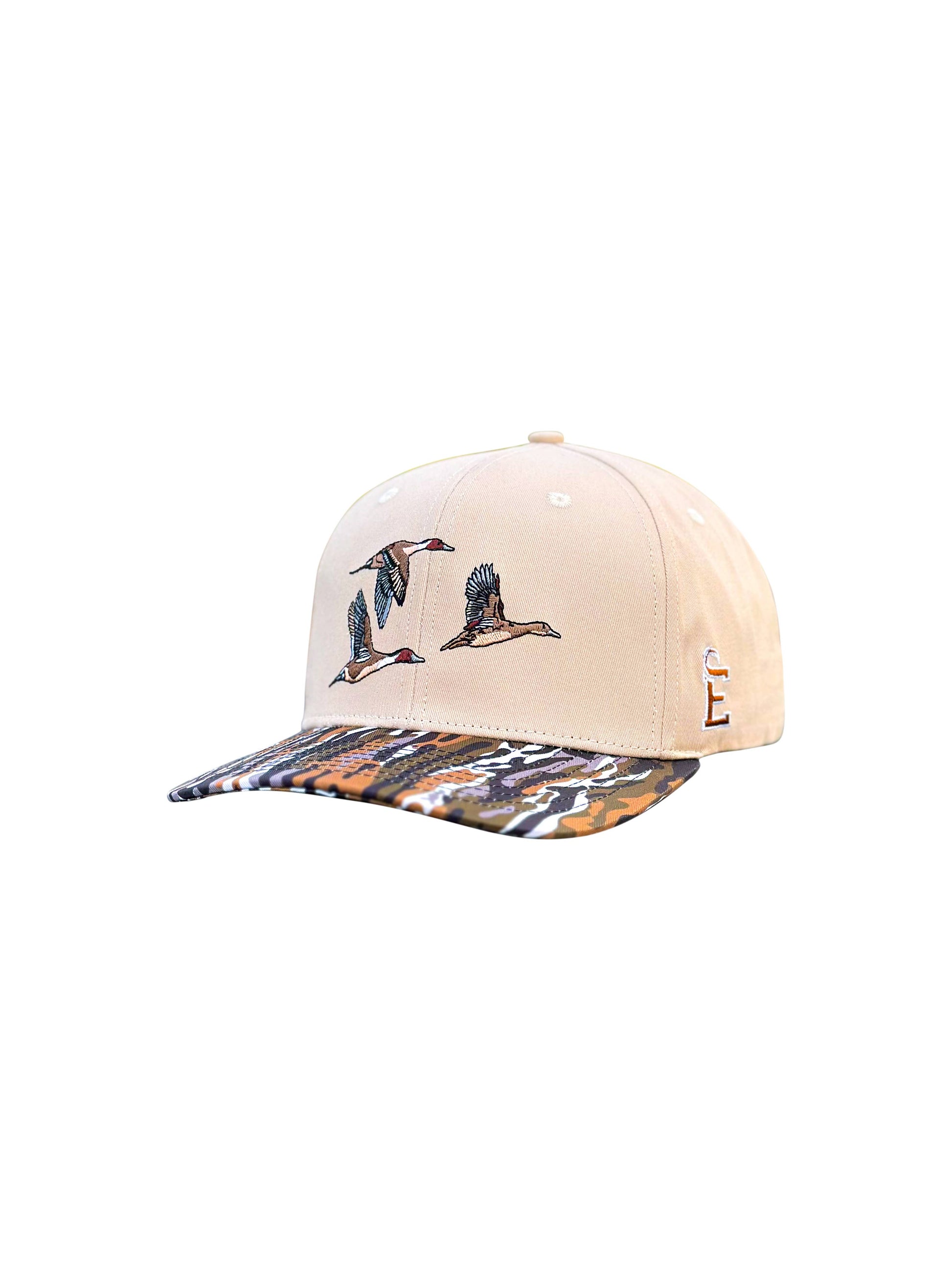 A 6-panel trucker high-profile hat that features our very own "Ranch" camo on the bill, all around cream brown panels, and our NEW "Chasin' Tail" design!