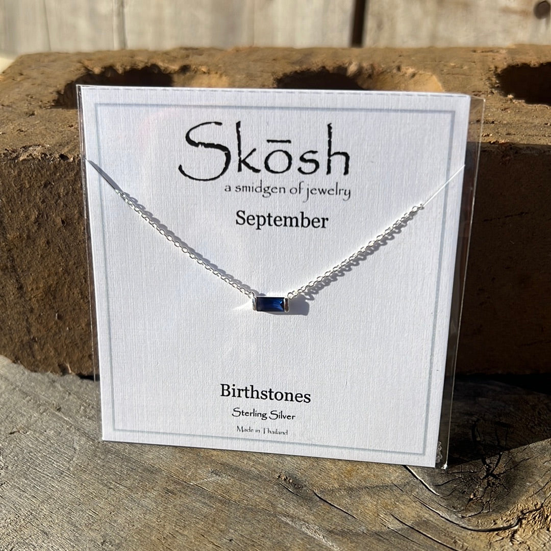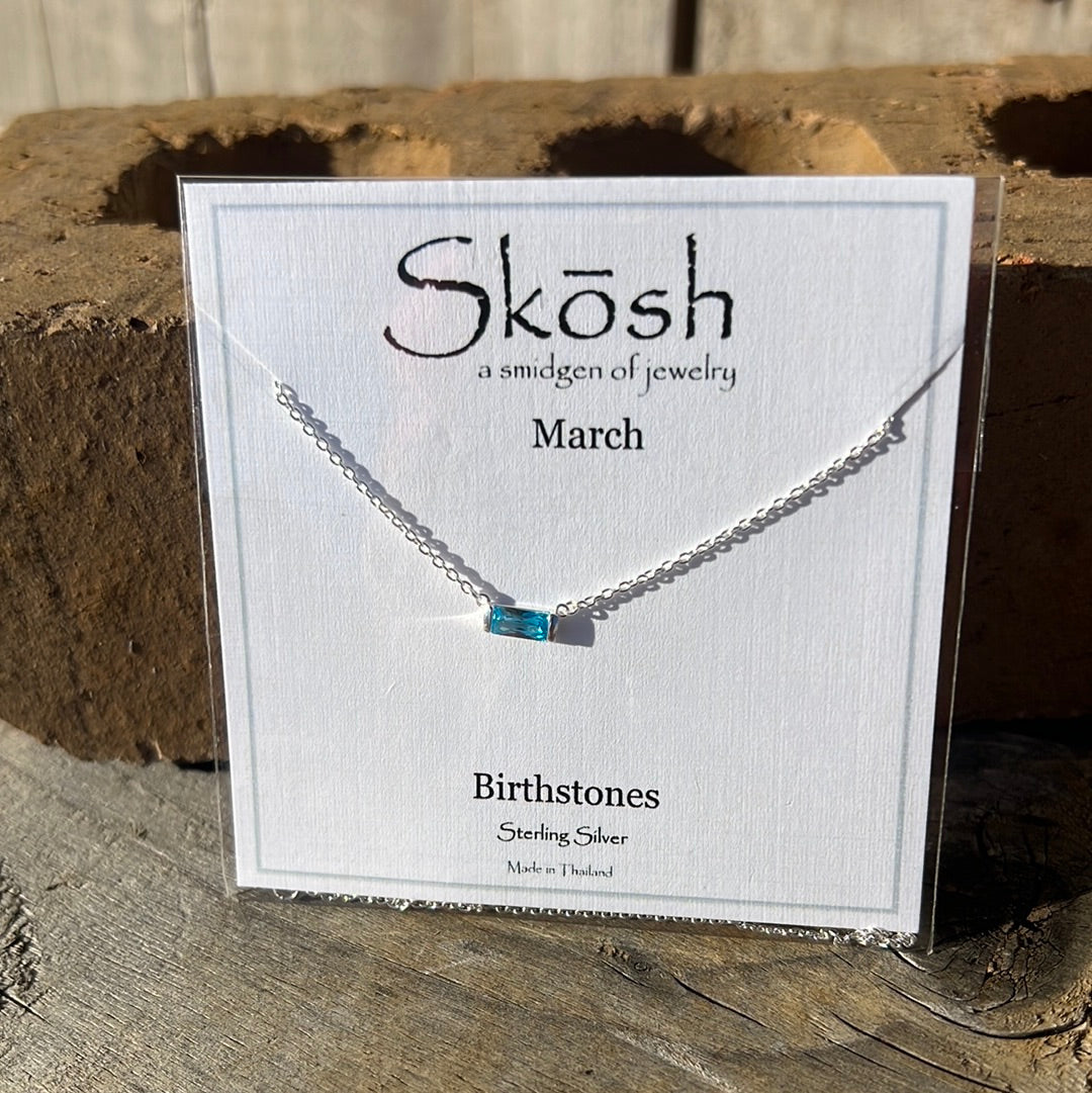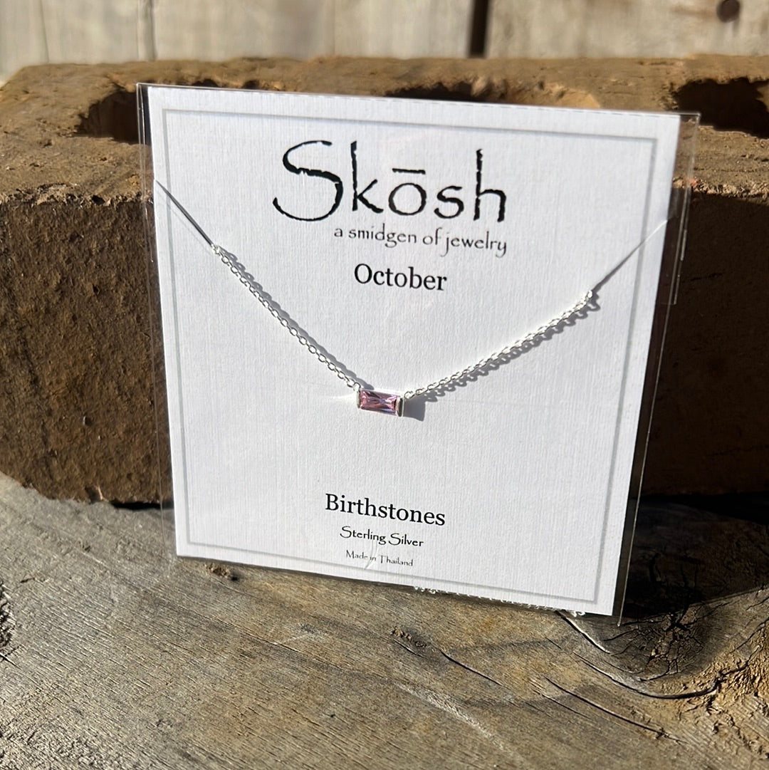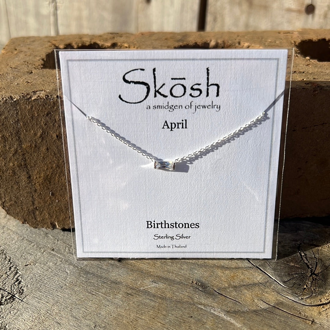 Silver Baguette Birthstone Necklace