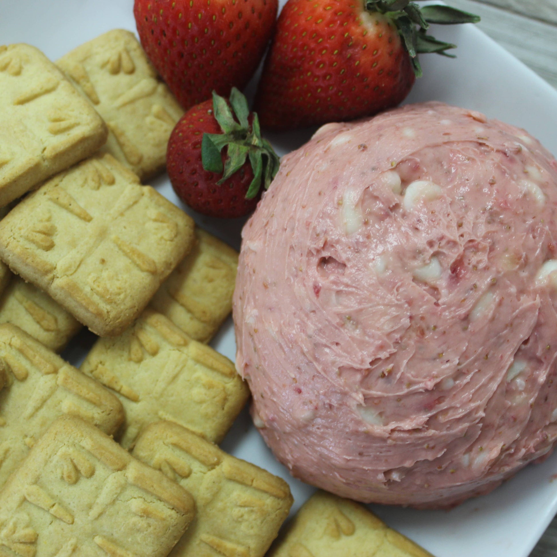 Our Strawberry Cheesecake Cheeseball evolved from our love of strawberry cheesecake. Made with real strawberries for that fresh taste and a subtle hint of white chocolate to balance the tartness. Perfect for spring and summer events!