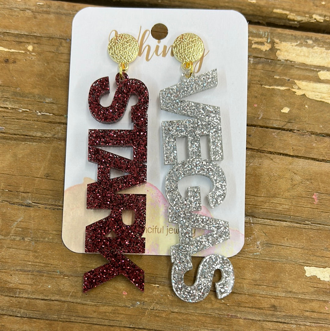 Silver & Maroon Sparkly Stark Vegas Earrings