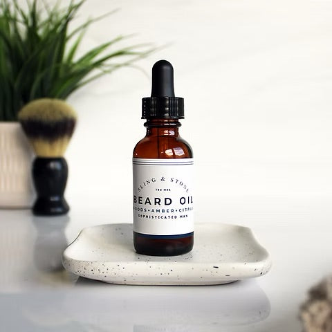 Each beard oil is 1oz and packaged in an amber glass bottle w/black cap.